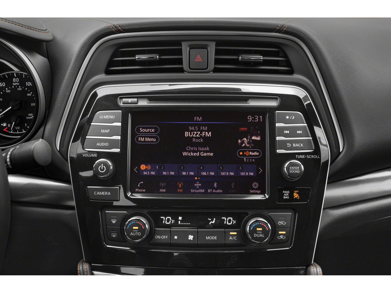 - Radio: AM/FM/CD Bose Audio System -inc: MP3/WMA/AUX reader, 11 speakers, Bose Centerpoint 2.0, NissanConnect featuring 8" color display w/multi-touch control, Apple CarPlay, Android Auto, 2 front illuminated USB connection ports (1 Type-A, 1 Type-C), Bluetooth® hands-free phone system, hands-free text messaging assistant, streaming audio via Bluetooth®, voice recognition, Siri Eyes Free, SiriusXM radio, SiriusXM advance audio features, NissanConnect Services powered by SiriusXM, Wi-Fi hotspot, Nissan door to door navigation, SiriusXM Traffic, SiriusXM Travel Link, display commander and 7" Advance Display Assist Display (ADAD)
